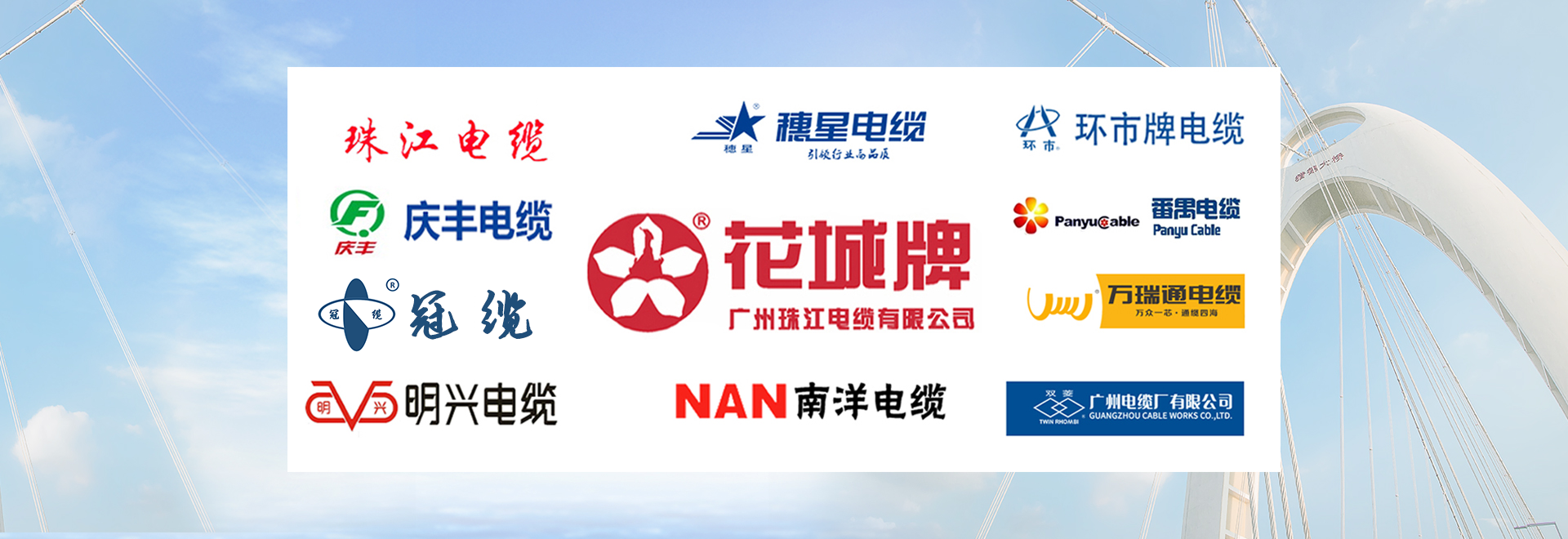 公司主營品牌:花城牌電纜  珠江電纜  南洋電纜  廣州電纜廠   番禺電纜  新興電纜  穗星電纜  明興電纜  金環宇  萬瑞通等電線電纜品牌。